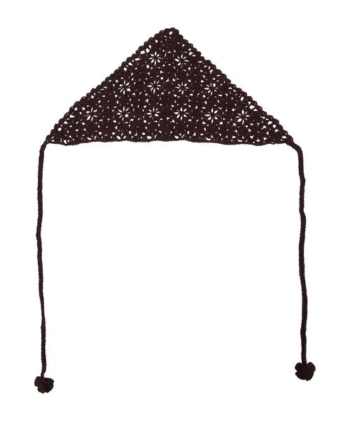 立体感のあるお花モチーフが目を引くかぎ編みデザインのバブーシュカ。紐先のモチーフが後ろ姿まで印象的で、シンプルなトップスやワンピースに合わせるだけでこなれた雰囲気に。ヘアアレンジのポイントとしてはもちろん、首元に巻いたりバッグに結んだりと幅広いアレンジが楽しめるアイテムです。【その他採寸】F 全長:[紐部分]57cm
