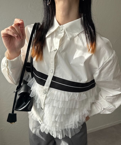 ① きれいめ大人スタイル(おすすめ)•ボトム:センタープレス入りスラックス/テーパードパンツ•カラー:ブラック・グレー・ネイビー•足元:ポインテッドトゥパンプス or ローファー•小物:ミニショルダー or ハンドバッグ→ 裾フリルの甘さをセンターライン&パンツで引き締めて、 大人っぽく着られる王道バランス。② フェミニンカジュアル•ボトム:ストレートデニム or セミフレアデニム•足元:バレエシューズ/ショートブーツ•アウター:ショート丈カーデ or ノーカラージャケット→ デニム合わせでもセンターラインのおかげできれい見え。③ モード寄りスタイル•ボトム:ワイドパンツ/レザー調パンツ•カラー:モノトーンコーデ•足元:厚底ローファー or サイドゴアブーツ→ フリルを“デザイン”として見せる大人モード。④ スカート合わせ(甘さ控えめ)•ボトム:ナロースカート/タイトスカート•ポイント:ウエストイン or 前だけイン•足元:ショートブーツ→ フレアスカートよりIラインがベスト。【Information】◆《お気に入り登録》がオススメ◆・「商品のお気に入り登録」で再入荷通知や、ラストの通知、セール通知も受け取ることが出来ます。・「ブランドのお気に入り登録」で新商品や再入荷など、お得な情報を受け取ることが出来ます。※撮影時のライティング、ご覧になっているモニター・PC環境により、実際の商品と色味が異なって見える場合がございます。予めご了承をお願い致します。大人ファッション 大人カジ お洒落 お仕事コーデ 低身長 20代コーデ 30代コーデ 40代コーデ 50代コーデ おすすめコーデ おちびコーデ 今日コーデ お洒落な人と繋がりたい オフィスコーデ お洒落さんと繋がりたい ママコーデ きれいめコーデ 春服 きれいめカジュアル 大人カジュアル ファッション通販 大人コーデ トレンド オトナカジュアル新作 新着 再入荷 エレガント ベーシック カジュアル 可愛い おしゃれ オシャレ お洒落 個性 個性的 定番 ベーシック 大人かわいい 大人可愛い 上品 女性らしい デザイン スタンダード ナチュラル きれいめ キレイめ シンプル フェミニン レディース レディースファッション 大人 ママ ミセス 30代 40代 50代 60代 フリーサイズ フリー 小さめ 小さめサイズ小さい 小さいサイズ 低身長 痩せ ほっそり 小柄 細身 標準サイズ 大きめシルエット 大きい 大きめ ビッグシルエット ぽっちゃり F サイズ自由 秋 夏 冬服 春物 夏服 秋服 春物 ホワイト 白 白色 日常着 普段着 日常使い