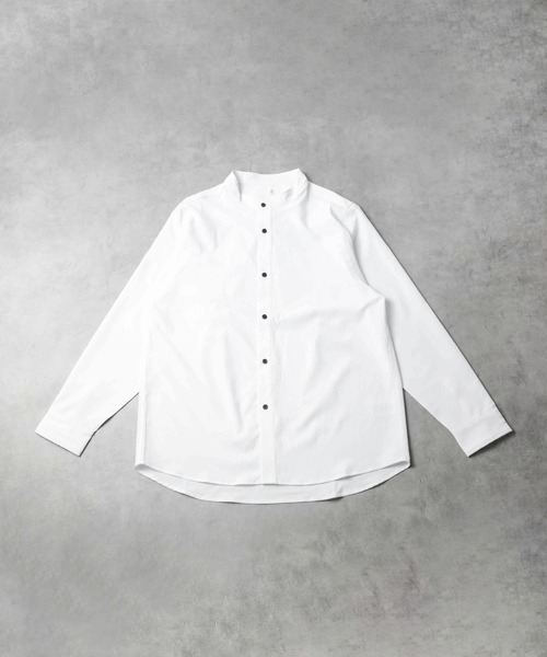 表情のある楊柳素材を使用したバンドカラーシャツ。軽さと程よいシボ感が特徴で、シンプルながら雰囲気のある一枚です。バンドカラー仕様により、すっきりとした首元を演出。レギュラーシルエットで、カジュアルからきれいめまで幅広く対応します。・楊柳素材(ポリエステル95%・ポリウレタン5%)・レギュラーシルエット・バンドカラーデザイン・軽やかな着心地