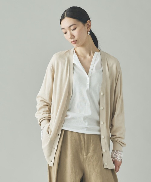 WEB先行予約受付中2026 SPRING&SUMMER COLLECTIONイタリア高級糸の肌触りと極上の落ち感を纏うハイゲージカーディガン■デザイン・イタリア糸ならではの上質な表情が引き立つ、シンプルなハイゲージニットカーディガン。・ミニマルなデザインに程よいゆとりを持たせ、羽織るだけで柔らかなニュアンスを演出。・Tシャツやタンクトップにさらっと羽織るだけで様になるシンプルさが魅力。・ワンピースに羽織って女性らしく、デニムに合わせてクリーンなカジュアルスタイルにもぴったり。オフィスではブラウスの上に合わせて、品のあるONスタイルにも◎。■素材 / お手入れ方法・イタリアの“エミリコットーニ(EMILCOTONI)”社のイタリー糸を使用。・イタリア紡績ならではのなめらかでしっとりとしたタッチが特徴。・肌に心地よい上品な薄さで、ロングシーズン着用可能。・シンプルなデザインをより引き立てる、高級糸ならではの落ち感と軽さが魅力。【Curensology(カレンソロジー)】 旅とは、非日常と日常の間を行ったり来たりしながら、その土地の空気や風景、文化、歴史、そして出会いを、五感のすべてを使って受け止めること。「カレンソロジー(Curensology)」は、そんな旅をイメージした、知的でエレガントな女性のためのワードローブとテキスタイルを提案。バカンスや出張に持っていきたい機能的なアイテムをはじめ、日々の暮らしをアップデートする新しいデザイン、着心地の良いエッセンシャルなものなどを展開しています。※サンプルにて撮影をしておりますので、実際の商品とは仕様や加工・サイズ等が若干異なる場合がございます。※屋外の光や照明の当たり具合で、実物と色味が異なって見える場合がございます。詳細画像の色味をご確認ください。 なお、商品の色や質感を出来るだけ忠実に再現するよう心掛けておりますが、パソコンなどの環境により、実物と若干異なる場合がございます。▼商品のお気に入り登録をおすすめします▼♡をクリック!完売カラーの再入荷や、ラスト1点の通知、セールの際の通知を受ける事ができます。ブランドのお気に入り登録もご一緒にお願い致します。