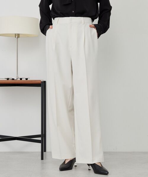 大人気の「美・美・美」シリーズからワイドパンツが今季も登場!「美脚」「美尻」「美素材」にこだわったアイテムです。「美脚」ウエストのタックとセンタープレスが縦ラインを強調し、すっきりとした美脚シルエットに。程よくゆとりがあり、身体のシルエットを拾いにくいデザインです。「美尻」お尻まわりのギャザーを分散させることでヒップラインをすっきり見せてくれます。ウエストの後ろ部分はゴム仕様でラクな穿き心地に。「美素材」・イージーケアシワになりにくい素材を使用しております。洗濯ジワが付きにくくお手入れが簡単です。洗濯用ネットを使用し、短時間脱水をおすすめします。・環境に配慮したサステナブルな素材選び回収されたペットボトルなどから再生されたポリエステル繊維を使用しています。ニットやシャツなど、トップスを選ばず穿いていただけます。デイリーはもちろん、オフィススタイルまで幅広いシーンで活躍するアイテムです。※モデル着用画像は、光の当たり具合で色味が違って見える場合がございます。※お使いのモニター環境によって商品の色味が違って見える場合がございます。●AMERICAN HOLIC ●(アメリカンホリック)大人の女性の毎日を軽やかで豊かにするブランド。カジュアルなのにオシャレ、コーディネートも楽。ONにもOFFにも等身大で楽しむオトナの日常着をテーマに、スタイリッシュかつ自然体を楽しめるカジュアルスタイルを提案します。▼ 商品のお気に入り登録がおすすめです ▼商品ページ内のハートマークをクリック。完売時の再入荷や、最後の1点の通知、お得なお値下げの際の通知を受ける事ができます。【お知らせ】ページでも通知が確認できます。