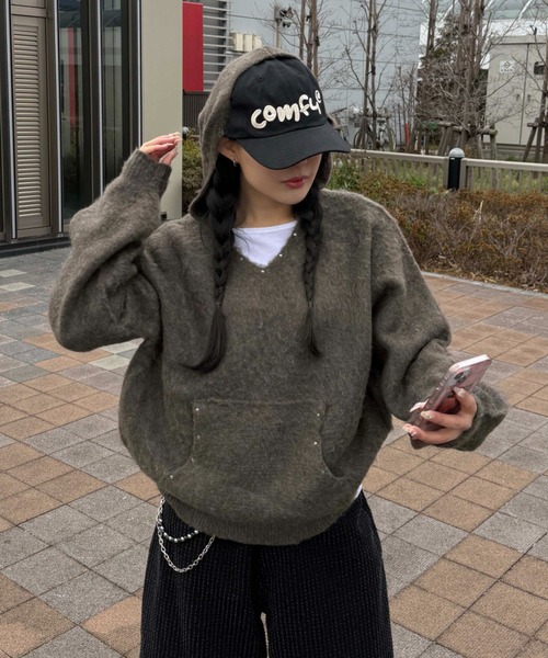 《sedacle》 ☆Instagramにて新作情報更新中☆ここには載っていない写真も⁉ スタッズが施されたこなれ感抜群なシャギーニットパーカーが登場◎起毛感あるシャギー生地を使用したトレンド感抜群なニットパーカーVネックでスッキリとしたシルエットがポイント◎ネック・ポケット部分にはスタッズが施されており、さらっと着用できるのにこなれ感ある万能なデザインインナーは無地のTシャツはもちろん、ボーダーなどの柄Tシャツやシャツ&ネクタイで海外ファッションスタイルなど幅広く着用いただけます☆トレンド感ある短丈仕様なのでTシャツレイヤードしてあげるのが今っぽくイチオシ大きめなフードが施されたゆるっとオーバーサイズなので男女問わずオススメです ---------------------------------------生地の厚さ:普通(シャギー生地)透け感:なし伸縮性:あり---------------------------------------・-・-・-・-・-・-・-・-・-・-【sedacle】韓国ストリートを中心にトレンドをmixさせたユニセックスブランド・-・-・-・-・-・-・-・-・-・-※ご覧のモニター環境や撮影環境により 実際の商品と多少色味が異なって見える場合がございます。 ご理解の程よろしくお願いいたします。 ◆ATTENTION◆・アテンションタグや洗濯表示を必ずご確認の上、ご使用ください。◆INFORMATION◆・お気に入り登録(♥マークをクリック)完売カラーの再入荷通知や、ラスト1点の通知、セールの通知も受けることができます。・ブランドのお気に入り登録新商品や再入荷など、いち早くブランドのお得な情報を受け取ることができます。
