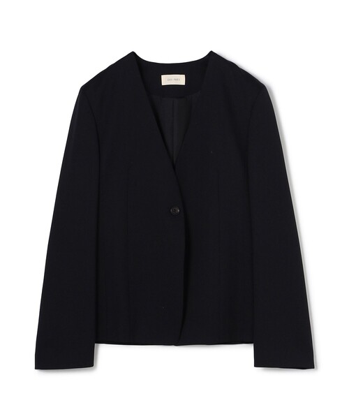 ななこ織りを変形して織り上げたバラシャ素材を使用したシリーズ。 レトロな雰囲気のある生地感に特殊な加工を施し、表面にハリとキレのある表情を生み出しています。 ウール混ながらさらっとした風合いでシーズンレスで活躍してくれます。 ジャケットは深めのVあきと直線的なウエストラインでシャープな印象の一着。 ワンボタンにすることでフロントを開けてもすっきりとしたバランスで着用いただけます。 同素材のパンツ(商品番号:22-04-61-04005)やジャンプスーツ(商品番号:22-06-61-06005)とのセットアップスタイルもおすすめ。 さらりと羽織るだけで〈DES PRES〉らしいモードなスタイリングが決まるアイテムです。 ■素材情報 厚み:普通 透け感:なし 光沢:なし 伸縮性:ナチュラルストレッチあり 手洗い:不可 裏地:あり(総裏) ※商品の色味は、商品単体または素材アップ画像をご確認ください 2026SS商品 店舗にお問い合わせの際は、下記の商品番号をお申し付けください。 商品番号:22-07-61-07005