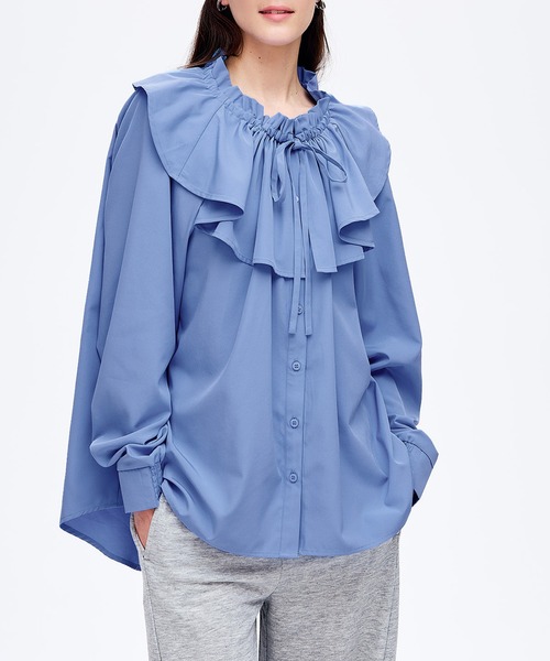 一枚でもレイヤードでも、大人かわいいビッグカラーブラウス ■デザイン・シルエット 存在感のあるビッグカラーが、さりげない可愛さと上品さを演出します。 ふんわりとした袖口はゴム仕様で、手元をすっきり見せながら程よい甘さをプラス。 ゆとりのあるシルエットで体のラインをさりげなくカバーしつつ、大人見えをキープ。 ■素材 ・レイヤードしてもごわつきにくい、ほどよいハリ感のある素材 ・柔らかすぎずしっかり感もあり、きれいなシルエットをキープ ■コーディネート 一枚で着ても顔まわりが華やかに決まり、コーデが簡単にまとまる主役ブラウス。 ニットやカーディガンとのレイヤードにも相性抜群で、季節を問わず活躍します。 パンツで大人カジュアルに、スカートで女性らしくも◎ 幅広いシーンにマッチします。 伸縮性:なし 透け感:Whiteのみややあり 裏地:なし ポケット:なし 生地感:さらりとしたポリエステル生地 注意点: お洗濯方法によっては縮みや色あせの可能性あり。乾燥機等のご使用はお控え下さい。 ▼生地や素材の性質により2cm前後サイズ誤差が出る場合がございます。 ▼モデル着用写真は撮影環境により、多少実際のカラーと異なる場合がございます。 ▼色落ちの恐れがありますので、他のものと分けて洗って下さい。 ▼当商品は機械による生産の過程上、『生地を織る際の糸の継ぎ目』や多少の『ほつれ』、繊維の『混紡』、形やサイズに多少の『誤差』が生じる場合がございます。 トップス ブラウス シャツ ビッグカラー ギャザー フリル リボン 袖口ゴム フロントボタン きれいめ 無地 長袖 ウォッシャブル 26ss コカ COCA coca COCA coca