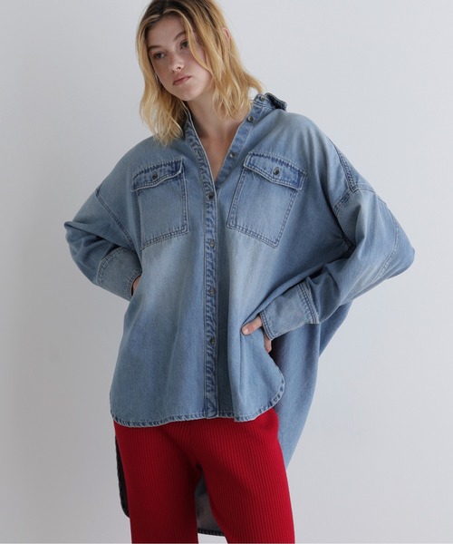 計算されたシルエットが魅力。エフォートレスに着映えるデニムシャツメンズライクなオーバーシルエットに、女性らしいディテールを落とし込んだデニムシャツ。 体を優しく包み込むようなゆったりとしたフォルムが、今の気分にぴったりの一枚です。 存在感のあるダブルポケットがカジュアルなアクセントを加えつつ、 背面のヨークから入ったタックが美しいドレープを生み出し、バックスタイルも印象的に。 ヒップが隠れる長めの着丈とラウンドしたヘムラインは、 どんなボトムスともバランスが取りやすく、着こなしの幅を広げます。 丁寧にウォッシュをかけた柔らかなデニム素材は、肌なじみが良く快適な着心地。 一枚でさらりと着るのはもちろん、タートルネックニットとのレイヤードや、ワンピースの上の羽織りとしてもロングシーズン活躍します。 カジュアルな中に光る計算されたシルエットで、ワンランク上のデニムスタイルを叶えてくれる一着です。 ※9オンス【お買いものをよりお楽しみいただく為に】■商品のお気に入り登録再入荷・残り1点・セールの通知を受け取ることができます。■ブランドのお気に入り登録新商品・再入荷/タイムセールやクーポンなどのブランドの情報を受け取ることができます。
