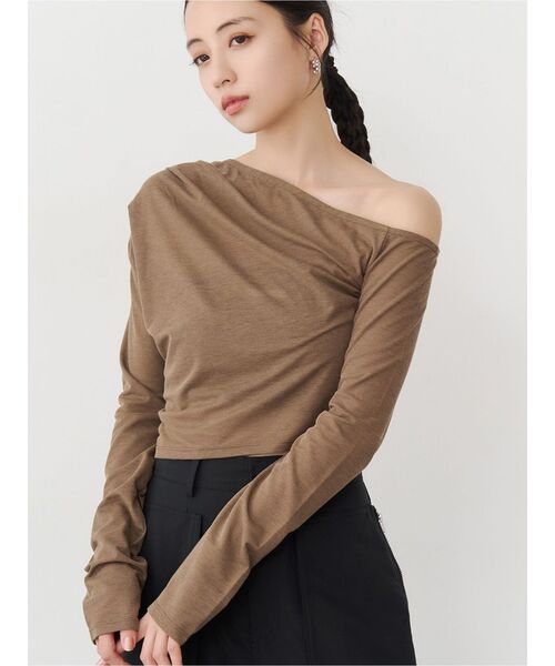 ドレープが上品さを演出 女性らしさがUPするワンショルトップス ■アイテム ドレープの入ったワンショルダートップス。 程よい肌見せでコーデに抜け感を与えるアイテム。 シンプルながらもさりげないこだわりが詰まった1枚です 様々なボトムスとの相性も良く1枚あると重宝します。 伸縮性もあり、程よく体に沿う素材感で着心地も◎ -------------------------------------------- 透け感:あり 生地の厚さ:やや薄手 伸縮性:あり サイズ感:普通 -------------------------------------------- 【知って得する便利機能◎ 】 ■商品のお気に入り登録 再入荷時、ラスト1点の時にお知らせします。 ■ブランドのお気に入り登録 新商品やお得な情報など、いち早くお得な情報をゲット! ぜひご活用ください。 ※着用画像はフラッシュの加減で実際の製品と色味等が異なる場合がございますので、生地のズームアップ画像をご確認ください。 ※ご利用の端末画面の設定により実際の商品と色味が異なる場合がございます。