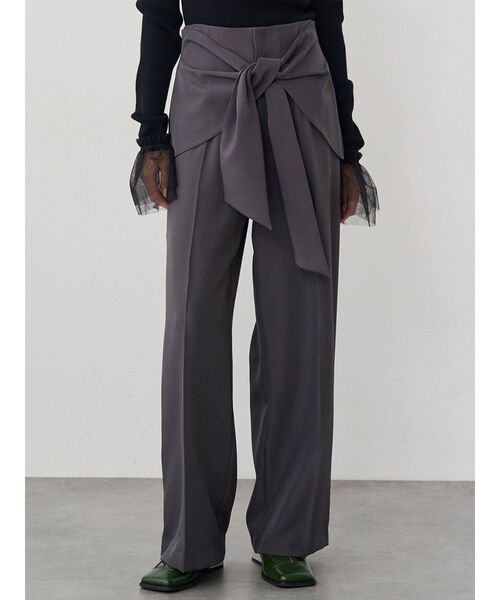 腰巻きデザインのパンツシンプルなトップス合わせでも一気にトレンドコーデに◎■アイテム巻きディティールをワイドパンツに落とし込み旬な1枚に仕上げました。巻きデザインを真ん中ではなく横にずらした位置でアシンメトリーなデザインにし、ウエスト周りをスッキリとさせた印象に。腰回りもスッキリ見えするよう拘りました。ハイウエストでスタイルアップ効果も抜群です。程よくゆとりのあるワイドシルエットです。サラッとした素材でロングシーズン着用いただけます。春はシャツなどの軽羽織、夏はニットタンクなどのトップス合わせがオススメです。 --------------------------------------------生地の厚さ:普通 伸縮性:なし透け感:無 サイズ感:普通-------------------------------------------- 【知って得する便利機能◎ 】■商品のお気に入り登録再入荷時、ラスト1点の時にお知らせします。■ブランドのお気に入り登録新商品やお得な情報など、いち早くお得な情報をゲット!ぜひご活用ください!※着用画像はフラッシュの加減で実際の製品と色味等が異なる場合がございますので、生地のズームアップ画像をご確認ください。※ご利用の端末画面の設定により実際の商品と色味が異なる場合がございます。