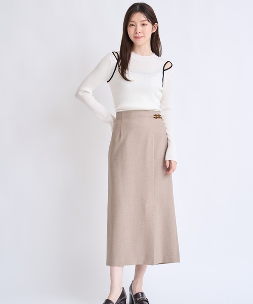 べっ甲調のチェーンモチーフがアクセントになったペンシルスカート。すっきりとしたシルエットで、上品なIラインスタイルを演出します。程よい肉感の生地でラインを拾いすぎず、快適な着心地を実現。ニットやブラウス、シャツとも合わせやすく、幅広いコーディネートに活躍する1枚です。■商品特徴裏地:あり生地の厚さ:普通透け感:なし伸縮性:なしポケット:あり(横)ファスナー:あり(後ろ)※不良品や配送不備以外での返品・交換はお受けいたしかねます。あらかじめご了承ください。※掲載商品はサンプルのため、実際の商品とは色味・仕様・加工・サイズ等が若干異なる場合がございます。あらかじめご了承ください。※商品の詳細な色味・仕様につきましては、商品単体のトルソー画像をご参照ください。※撮影時の照明やご利用のパソコン・スマートフォンの設定により、実際の色味と異なって見える場合がございます。あらかじめご了承ください。