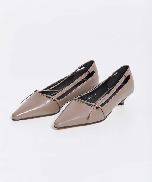 シャープなポインテッドトゥが女性らしい印象を引き締めるパンプス。サイドのカットディテールと細めのリボンストラップが足に程よくフィットし、美しいシルエットを演出します。安定感のある低めヒールで、長時間の歩行でも疲れにくいのが嬉しいポイント。日常使いから通勤、きれいめコーデまで幅広く活躍し、足元からさりげなく大人のムードを添えてくれる1足です。※不良商品・配送不備以外の返品交換はお受けできませんので予めご了承ください。※画像の商品はサンプルです。実際の商品と色味、仕様、加工、サイズ等が若干異なる場合がごさいます。※商品の色味・仕様は、商品単品画像をご参照下さい。※撮影時の照明やお使いのパソコン・スマートフォンの設定等により画像の色が実物と異なって見える場合がございます。予めご了承ください。
