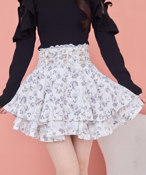 ♡ROJITA 2026 SS collection♡♥Designコロンとしたハート釦とサイドのWベルトにハートバックルをあしらった、ガーリーな2段フレアスカート。上品で可愛らしいレース使いが、スカート全体に華やかさをプラスします。花柄は女の子らしさを引き立て、ブラックとピンクはシンプルな無地でコーデに合わせやすい一枚です。♥Stylingブラウスからニットまで幅広いスタイリングに合わせられます♪厚底シューズを履けば足長効果もUP商品のお気に入り登録♪ 完売カラーの再入荷通知や、ラスト1点の通知、セールの通知など商品の情報をいち早くGETできます♪ ブランドのお気に入り登録♪新商品や再入荷等、いち早くブランドのお得な情報をGETできます♪ 照明の関係で、実際のお色味と若干異なる場合がございます。予めご了承ください。
