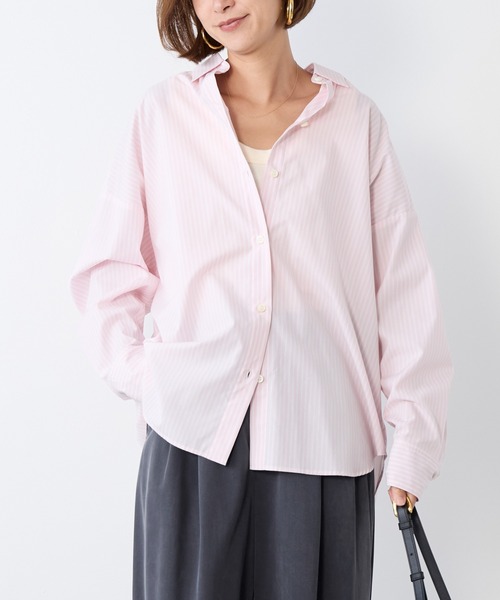 去年好評だったストライプシャツがブラッシュアップして今年も登場。PINK・YELLOW・BLUEは、気持ちが明るくなるような春にピッタリな色のストライプ柄を展開。OFF WHITEは、シンプルに着回しが効く無地を展開。少しオーバーサイズのシルエットは体のラインを拾わず、体型を気にせず着回せます。去年と裾のカッティングを変えており、より着回ししやすいデザインにブラッシュアップしています。羽織りとして、インナーとして、また一枚で主役としても活躍するワードローブに欠かせないアイテムです。【fabric】スーピマコットンを100%使用し、イージーケア性とストレッチ性も兼ね備えた生地です。綿の風合いを重視した滑らかかつ弾力があります。防シワなのも嬉しいポイントです。--------------------------------------透け感:ややあり裏地:なし伸縮性:なし光沢感:なし生地の厚さ:普通--------------------------------------水洗い可*詳しくは商品の洗濯表示にてご確認をお願い致します。【coordinate】シンプルなTシャツの上にシャツを羽織るだけで、こなれ感のある定番カジュアルスタイルが完成します。足元はスニーカーでカジュアルダウンさせたり、ローファーで少しきれいめにまとめたりと、調整可能です。肌寒い季節にはシャツをインナーとして使い、その上にニットやカーディガン、ジャケットなどを重ね着することで、季節感のあるレイヤードスタイルが楽しめます。肩掛けしたり腰に巻いたりすることで、コーディネートにメリハリを加えることもできます。シャツをタックインして、ベルトでウエストマークするときちんとした印象になります。タイトスカートやフレアスカートと合わせることで女性らしい柔らかさをプラスしつつ、きちんと感を活かしたコーデになります。※こちらの商品はとてもソフトな素材を使用しているため、摩擦や引っ掛け、過度な伸ばし及び引っ張り(脱衣時、洗濯時のからみ等)はお避け下さい。※商品画像はできる限り実物の色に近づけるよう徹底しておりますが、お使いのデバイスのモニター設定、お部屋の照明等の閲覧環境により実際の色味と異なって見える場合がございます。※画像の商品はサンプルです。実際の商品と仕様、加工が若干異なる場合があります。予めご了承くださいませ。▼商品のお気に入り登録お気に入りアイテムの値下げ・再入荷・在庫1点などの通知を受け取ることができます。 ▼ブランドのお気に入り登録新商品や再入荷、クーポン配布などのお得な情報を受け取ることができます。