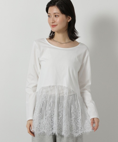 ボディがカットソー、裾が異素材デザインになったトップス。ニットやスウェットと合わせれば簡単にレイヤードスタイルが楽しめる1枚です。裾のデザインはレースと布帛の2種類でご用意。色違いでもおすすめのアイテムです。【素材】カットソーは柔らかな綿100%素材。繊細なレースとシンプルな布帛の切替デザイン。【スタイリング】ニットやスウェットとのスタイリングがおすすめ。ジャストのサイズ感なので重ね着もしやすく、長袖でシーズン長くお使いいただけます。