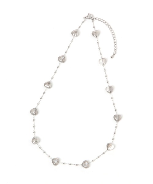 ■素材■水、汗に強く傷つくにくいステンレス素材を使用。変色しづらく耐久性に優れているのが特徴です。ハート部分はガラス素材で出来ています。■デザイン■首元に存在感を放つハートネックレス。シンプルなコーデのアクセントにもおすすめです。