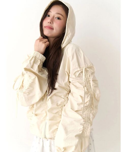 軽やかなナイロン素材を使用した、立体感のあるシルエットが魅力のブルゾン。袖山に施されたドロストギャザーが印象的で、リボンの結び加減でボリュームやニュアンスを調整できます。短めの丈感とふんわり広がるスリーブデザインが、カジュアルながら女性らしいバランスを演出。シンプルなインナーに羽織るだけで、スタイリングにこなれ感をプラスしてくれます。