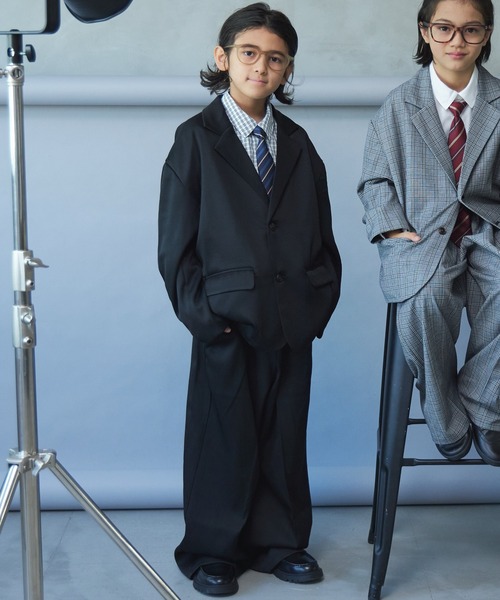 きちんと感のあるテーラードカラージャケットと、センタープレス入りのパンツがセットになったアイテムです。 ペアマノンストリートらしいゆったりとしたシルエットで、クールでこなれ感のある着こなしが叶います。 入学式・卒業式・結婚式などのフォーマルシーンはもちろん、きれいめなお出かけスタイルとしても活躍。 セットアップならではの統一感で、さっと着るだけで大人っぽいスタイリングが完成します。 本商品はやや大きめのサイズ感となっております。 きれいなシルエットで着用いただくため、身長に合ったサイズでのご購入をおすすめしております。 (例:身長120cmのお子さまの場合、120cmサイズで程よくゆとりのある着用感が目安です。) 体型には個人差があるため、サイズスペック・サイズ比較画像をご確認のうえご検討ください。 【生地感】 なめらかなタッチのきれいめ素材を使用しています。 着用中もシルエットをきれいに保ちやすく、きちんとした場面でも安心して着られるのが魅力です。 シワになりにくく、型崩れしにくいのも嬉しいポイント。 スタイリングで合わせたアイテムはこちら シャツ<631721>※画像内の蝶ネクタイ・ネクタイは商品には付属いたしません。 【スタイリング】 無地のシャツはもちろん、柄シャツを合わせて遊び心のあるスタイリングもおすすめ。 シャツを合わせればきちんとした印象に、Tシャツを合わせれば程よくカジュアルダウンした着こなしに。 シーンに合わせて、コーディネートをお楽しみください。 【ポケット】 あり(ジャケット両サイド、パンツ両サイド) 【伸縮性】 なし 【透け感】 透けない 【クリーニング】 洗濯機洗い可(ネット使用) 【裏地】 あり 【濃色品・色落ち色移り】 濃色品は、色落ち・色移りをする恐れがあります。摩擦(特に湿った状態での摩擦)や汗や雨などで他の衣料や下着(特に白物)に色移りしますので、十分ご注意ください。 ※モニター・環境等により実際の商品と色味が多少異なって表示される場合がございます。 また、生産時期により色味が若干異なる場合がございます。予めご了承ください。