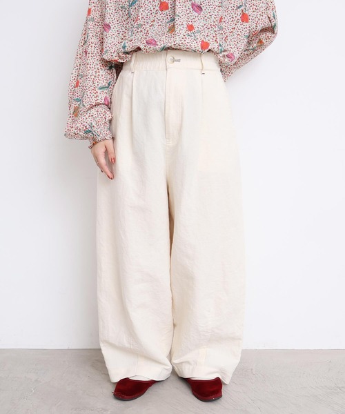 和紙と綿の糸がデニム綾でおられた、しゃりしゃり感のある生地。 デニムのような雰囲気なのにとても軽くて肌離れのよい、和紙ならではの風合いがとても魅力。 ゴムだけど腰回りはスッキリ見せてくれて、立体感のあるカーブシルエット。 インするだけでなくて、重ねた時にも合わせやすいようなパンツをつくりました。 色合わせを楽しめ、履き心地もよい春のシンプルボトムです。 同素材のジャケットとセットアップもおすすめ。 ※着用商品はサンプルです。実際の商品と仕様、加工、サイズが若干異なる場合がございます。 ※光の関係で実物の商品の色味とは若干異なる場合がございます。 実際に近い色味は詳細画像をご参照下さい。 ※取り扱いの注意については取り扱い表示をよくご確認の上、着用をお願いいたします。 【素材の特性、お取り扱いの注意】 ・この製品に使用している糸は和紙を含んでいる為、水にぬれると強度が落ちる恐れがあります。お洗濯の際は手で優しく押し洗いし、短い時間で脱水し、日陰で平干ししてください。濡れた状態で強く引っ張ったりすると破れる恐れがありますのでご注意ください。 ・この製品は生地洗いをしています。一枚ずつしわや表情の出かたに差がありますが他にない独特の表情感をお楽しみください。 ・この製品は独特の風合いを出す為に製品洗いをしています。一枚一枚の色味、風合い、サイズ等も微妙に違いますが、他の製品では味わえない雰囲気をお楽しみ下さい。 ・この製品を洗濯する際には多少縮む場合がありますので、形を整えてから日陰で干して下さい。 ・こちらの商品は、濃色の場合汗や雨などで濡れた際に摩擦により色落ちし、他の衣料や小物に移染することがありますので、ご注意ください。 l'atelier du savon(アトリエドゥサボン) CONCEPT 1つ1つにかけられた手のぬくもり 日々の生活に、少しのデザインを加えた大人の日常着 あそび心とあたたかみ