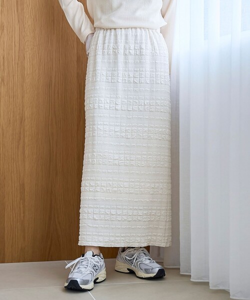 〈 coen 26SS collection 〉 立体感で魅せる、きれい見えナロースカート ■デザイン/素材 〇立体感のある膨れジャカード素材 トレンド感のあるポコポコとした肉厚素材で、シンプルながら着映えし、女性らしさを引き立てます。 〇すっきり見えするIラインシルエット きれいなナローシルエットが縦ラインを強調し、スタイルアップ効果も期待できます。 〇快適な着用感と実用性 ウエストはぐるりとゴム仕様ではきやすく、後ろスリット入りで歩きやすさも兼ねそなえています。 裏地付きで透けにくいのも嬉しいポイントです。 --------------------------------------------- 透け感:なし 生地の厚さ:普通 光沢感:なし 裏地:あり ウエストゴム:あり サイドポケット:なし --------------------------------------------- ■コーディネート スウェットやニットとの組み合わせで、ゆるっとした抜け感コーデを楽しめます。 ロンTを合わせたシンプルなスタイルは、どなたでも取り入れやすい万能バランス。 バラクラバやワンハンドルバッグなど、トレンド感のあるアイテムとも好相性です◎ 【coen お買い物ガイド】 ◎商品をお気に入り登録!完売商品の再入荷やラスト1点の通知が届きます。 また、あなただけのタイムセールアイテム候補になるので、お得にGETできるチャンスが増えるかも! ◎"coen"(コーエン)をお気に入りブランドに登録→新商品や再入荷など、ブランド最新情報をいち早くお知らせ! 是非、ご活用いただきお買い物をお楽しみください! 【注意点】 ※スチームアイロンは使用不可となります。ご注意ください。 ※濃色の場合、摩擦により他の物へ色移りすることがあるためご注意ください。 ※直射日光や蛍光灯の長時間照射により、色あせすることがございます。 ※洗濯の際は多少色落ちすることがありますので、出来るだけ単品洗いをお勧めいたします。 ※商品の性質上ほかのものに引っ掛かりやすいため、着用の際はご注意ください。 ※撮影商品はサンプルの為、実際の仕様と異なる場合がございます。 ※画像の商品は光の照射や角度、お使いのモニター環境により、実物と色味が異なる場合がございます。スタジオ物撮りの画像が実物の色味に一番近くなっております。 ※予約商品の場合、お届け予定はあくまでも目安となります。 生産の都合上、お届け時期が前後したり実店舗入荷時期とずれる場合がございますので、あらかじめご了承ください。 品名:フクレジャカードナロースカート 品番:76706000016