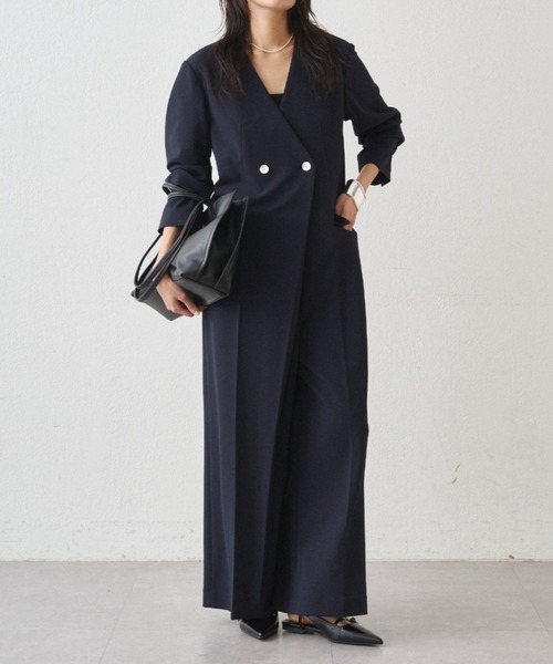 凛とした雰囲気を演出するオールインワン。■デザインデコルテを美しく魅せるノーカラーデザインすっきりとしたマニッシュな雰囲気に。深めのVネックラインが、顔周りをすっきりと見せ、女性らしさを引き立てます。ダブルブレストのデザインが、クラシカルで上品な印象を与えます。ワイドレッグのシルエットが、リラックス感とスタイルアップ効果を両立。※ボタンは変更になります。■コーディネートすっきりとしたノーカラーデザインなので、アクセサリーも映えます。パンプスと合わせてオフィスや、オケージョンにも最適です。■素材・洗濯表記素材:ポリエステル97% ポリウレタン3%洗濯表記:洗濯機洗い可●裏返してネットに入れて洗濯してください。●濃色製品は色落ちする恐れがありますので他のものと分けて洗い、洗濯後は早めに干してください。●洗濯の際は、ファスナー・ボタンを閉じてください。●洗濯後は、形を整えて陰干ししてください。●タンブラー乾燥は避けてください。●素材の特性上、縮むことがありますのでスチームアイロンは使用しないでください。●濃色のものは汗や摩擦により色落ちすることがありますのでご注意ください。●素材の特性上、洗濯や雨等により若干縮むことがあります。【Atelier N°5/アトリエヌメロサンク】大切な人と過ごす特別な時間。かけがえのないその一瞬のために。服ではなくその人自身を引き立たせる、シックでモダンなオケージョンウエアを提案します。【お気に入り登録でお得な情報をお知らせいたします 】完売カラーの再入荷やラスト1点の通知、セールの通知を受けとることができます。【ブランドのお気に入り登録】新商品や再入荷、いち早くセールやクーポンなどのブランドの情報を受けとることができます。生産の都合上、お届け時期が前後する場合がございます。システムの都合上、店舗より入荷が遅れる場合がございます。実際にお届けする商品と仕様やサイズが異なる場合がございます。照明や光の当たり具合で色味が違って見える場合があります。