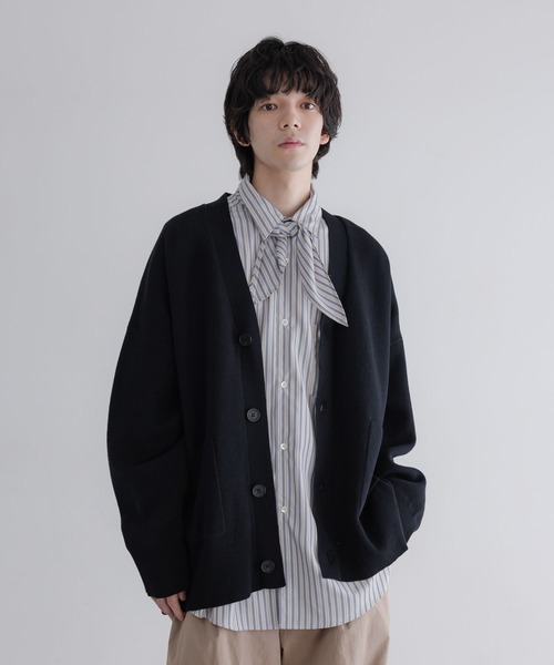 ■素材コットン100%の糸を使用した、スウェットライクな表情のニット素材。編み立てで仕上げることで、スウェットのようなカジュアルさと、ニットならではの上品さと柔らかさを兼ね備えています。スウェットよりも軽やかで、ロングシーズン快適に着用できます。デイリー使いはもちろん、きれいめスタイリングにも取り入れやすい素材感です。■デザインスウェットライクな表情のニット素材を使用したVネックカーディガン。身幅を大胆に取ったオーバーサイズシルエットが、ベーシックなデザインに今っぽさをプラスします。ルーズになりすぎないバランスに仕上げることで、羽織るだけで自然とスタイリングが決まる一着に。シンプルながらも計算されたサイズ感で、大人のカジュアルスタイルを格上げします。
