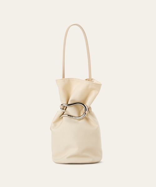 【2026 Spring新作】■POINTPOIRE(ポワール)シリーズ。LE VERNISオリジナルのPOIRE金具がポイントになった巾着型バッグが登場。POIRE金具がベルトのようになっており、留めるときゅっと口が結ばれた状態に、外した状態でもチャームのようにワンポイントになる2WAY仕様。ハリと艶のある生地を使用し、カジュアルすぎないちょうど良いバランスに仕上げました。Mサイズに比べてSサイズは、コロンとしたかわいらしい存在感が際立ちます。・コーディネートに華を添えるバケットシルエット・ポイントとなる大き目のPOIRE金具・ハリと艶のある上質なナイロン素材・全体を引き締める部分使いしたフェイクレザー・きれい目コーデにも合う程よいバランス感・ペットボトルや折り畳み傘、iPadも入る十分な収納力・スムーズに荷物が取り出せるサイドジップ付き・320g<POIRE(ポワール)>洋梨(POIRE)を模した金具はLE VERNISオリジナル。■COLORWHITEGRAYBLACK※画像の商品は光の照射や角度により、実物と色味が異なる場合がございます。また表示のサイズ感と実物は若干異なる場合もございますので、予めご了承ください。※お取り扱いの際は、商品についている品質表示とアテンションタグを必ずご確認下さい。<<LE VERNIS/ルベルニ>> 1998年にスタートした日本の服飾雑貨ブランド。”Rough”・”Feminine”・”Utility” 3つのキーワードを軸に、カジュアルでありながら女性らしさを忘れないディティール オンオフ問わず長く使いたくなる機能性や素材にこだわった小物を追求。<<お知らせ>> ◆商品のお気に入り登録◆ お気に入りアイテムの値下げ・再入荷・在庫1点などの通知を受け取ることができます。 ◆ブランドのお気に入り登録 ◆新商品や再入荷、セール、クーポン配布などお得な情報を受け取ることができます。