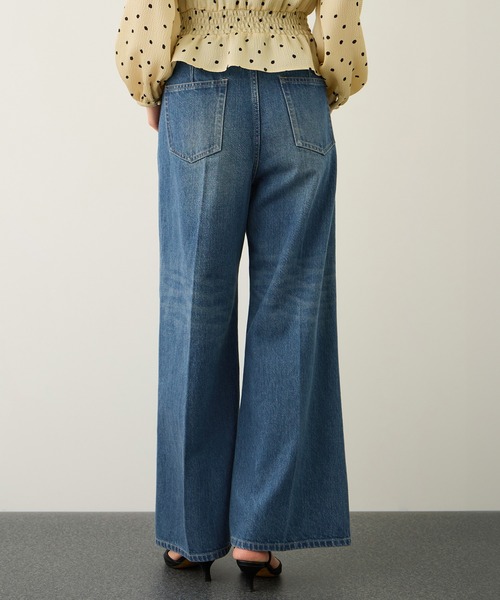 ラクしてきれいを叶える。穿くだけで美脚見えする大人のデニムパンツ【デザイン・シルエット】センタープレス入りで、ウエストゴム仕様のイージーに着られるワイドパンツ。リラックス感がありながら腰回りはすっきりと仕上げており、デニムでもスタイルよく見える設計です。岡山のデニム工場で縫製し、岡山素材を使用した“地産地消”を意識したサステナブルな取り組みのJAPANクオリティ商品です。【おすすめのスタイリング】同素材のブルゾンとのセットアップや、ニットやカットソーを合わせたカジュアルスタイルもおすすめです。【素材】デニム老舗生地メーカー『KUROKI』の11oz・C100%デニム。重すぎず、女性らしく着られる軽やかな素材です。※インディゴ染料を使用した製品に関してぼお取り扱いについて・着用による摩擦で組み合わせの衣服や他のものなどに色移りすることがありますので十分ご注意ください。・濡れたままでの放置はお避け下さい。・単品で洗ってください。・強い日光や照明に長時間当たりますと、変色しやすくなっておりますので、光の当たる場所に放置せず、暗所で保管するようお願いします。----------------------------透け感:なし裏地:なし伸縮性:なし光沢感:なし生地の厚さ:厚手ポケット:なし開き方:ファスナー---------------------------【モデル情報】モデル身長:171cm 着用サイズ:F(ショートヘア)モデル身長:175cm 着用サイズ:F(ロングヘア)【岡山デニム シリーズ】デザイン違いでセットアップでも着られるセンタープレスイージーワイドデニムパンツ(品番: GGS26030)ノーカラークロップド丈デニムジャケット(品番: GGL26030)がございます。※画像の商品はサンプルです。実際の商品と仕様、加工、サイズが異なる場合がございます。※撮影場所やライティング、お使いのモニター環境によって色の見え方が異なる場合がございます。※商品のカラーは画像の色味をご参照ください。動画は仕様説明のため、色味が実物と異なる場合がございます。
