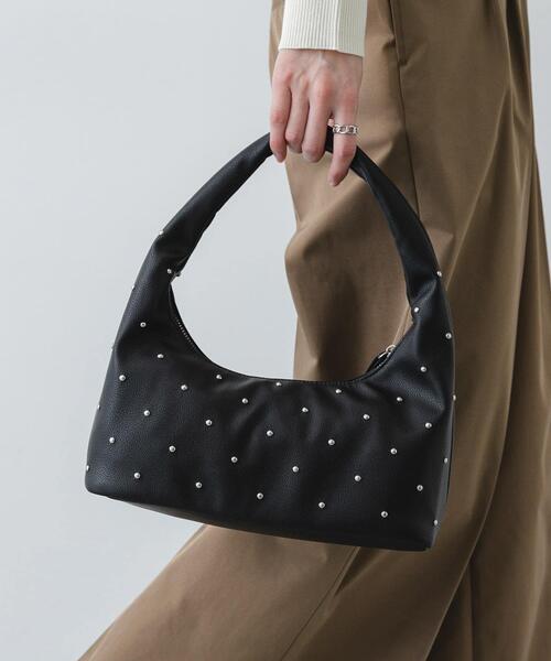 【遊び心をプラス。スタッズが煌めく立体フォルムバッグ】・しぼのあるフェイクレザーと、しっかりとしたフェイクスウェードの表情豊かなアソート展開・手元に馴染むころんとした愛らしいフォルムがコーディネートのポイントに・全体に散りばめられたスタッズデザインが、都会的なエッジを添える仕上がり独特の素材感が楽しめるミニバッグ。柔らかなしぼ感のあるフェイクレザーと、重厚感のあるフェイクスウェードの2タイプをご用意しました。思わず持ち歩きたくなるようなころんとした丸みのあるフォルムが、装いに程よいリラックス感をプラスします。全体にあしらわれたシルバーのスタッズがアクセントとなり、シンプルなスタイリングも一気に華やかな印象へ。コンパクトながら存在感を放つ、大人の遊び心をくすぐる一品です。【2026 Spring/Summer】【26SS】※この商品は、素材の特性上、空気中の湿気や紫外線、熱や汚れなどにより、時間の経過と共に、劣化(剥離・べたつき)する恐れがありますので、ご注意ください。※この商品は素材の特性上、汗・水・摩擦等により色落ち・色移りをする恐れがありますので、ご着用の際は、充分にご注意ください。総重量 : 約200g(BLACK), 約170g(GREIGE)※商品画像は、光の当たり具合やパソコンなどの閲覧環境により、実際の色味と異なって見える場合がございます。予めご了承ください。※商品の色味の目安は、商品単体の画像をご参照ください。▼お気に入り登録のおすすめ▼お気に入り登録された商品は、マイページにて現在の価格情報や在庫状況の確認が可能です。お買い物リストの管理にぜひご利用ください。One