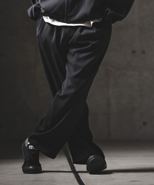 175cm B90-W73-H89 靴26.5cmのモデルがMサイズを着用。 しなやかな風合いのポリエステルクロス素材を使用した、ワイドストレートパンツ。 同素材の羽織りアイテムとのセットアップにも対応し、洗練された統一感のあるスタイリングが可能な一枚です。 【デザイン・ディテール】 ヒップ周りのボリュームをナチュラルに整えるフロントの2タックデザイン。 ウエストの帯裏にはレオパード柄のテキスタイルを貼り合わせ、見えない部分にもさりげない遊び心を。 ボタン&ファスナーのフロント開閉に加え、平ゴム&スピンドルを配したイージー仕様で、快適な着用感を実現しています。 【ファブリック】 ポリエステルクロスにポリウレタンを混紡したストレッチ素材を使用。 しなやかな風合いと伸縮性を備えた素材。 【シルエット】 ワタリやヒップ周りにしっかりとボリュームを持たせ、裾に向かって真っすぐ落としたワイドストレートシルエット。 素材の落ち感と相まって、立体的でありながらすっきりとした印象に仕上げています。 【セットアップ対応アイテム】 検索品番:mj11355 ※着用画像と商品単体画像で色が異なる場合がございます。 ※商品単体画像を実物により近づけております。