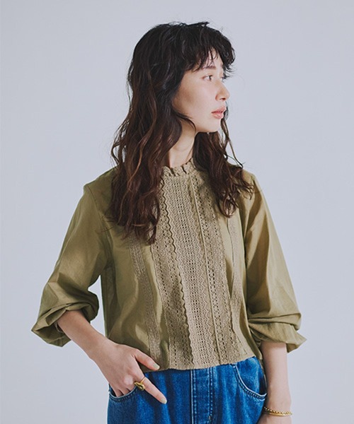 ボリュームのあるボトムスとも好相性!短め着丈ですっきり見えが叶うレースブラウスーーー【素材】透け感のあるローンを使用。フロントや袖口、襟など3種類のレースを贅沢に使用しています。【デザイン】大人も着用しやすい甘めデザインのレースブラウス。透け感のある素材を使用していますが、レースは生地にたたきつけているのでフロントの透け感も気にならず安心して着用出来ます。あえて短めの着丈に設定しているので、ボリュームのあるボトムとも好バランス◎普段使いにもオケージョンシーンにも使える万能アイテムです。トップス ブラウス シャツ レースーーー【スタイリング】デニムなどのカジュアルなアイテムと合わせた甘辛コーデがおすすめ。綺麗めにも着こなせるので、オケージョン対応のジャケットやベストのインにもご着用いただけます。