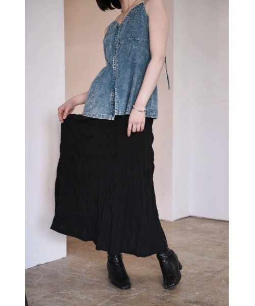 \ ブラック・ホワイトの2色展開 /動くたび ふんわり揺れる表情のある素材感◎ 着回ししやすいシワ加工ロングスカート立体感のあるシワ加工素材が、シンプルな中にさりげない表情をプラスするロングスカート甘くなりすぎず、カジュアルにもきれいめにも取り入れやすい一枚です▼ Size・・・・・・・本商品はフリーサイズのみのご用意となっております。160cmのモデルが着用した場合商品画像のような足元が程よく見える軽やかな印象となります。155cm前後の方が着用された場合は、くるぶし付近までの丈感でお召しいただけます。ウエストはゴム仕様となっており、締め付け感が少なくリラックスして着用いただけます。150mc前後の方でもウエスト部分を折るなどして調整していただくことでご着用可能です。・・・・・・・▼ Point・表情豊かなふわりとしたシワ加工デザイン◎・広がりすぎない、落ち感のあるシルエット・ウエストはゴム仕様で快適ロングシーズン活躍する軽やかな素材感身体のラインを拾いにくく自然とスタイルアップが叶います。▼Styling・ニットやスウェットと合わせて抜け感のあるスタイルに・ブラウスやシャツで大人っぽく・ジャケットやコートとも相性◎足元はブーツからスニーカーまで幅広く対応デイリーにもお出かけにも使いやすいアイテムです▼ Color・ブラック:シックで引き締まった印象に◎・ホワイト:軽やかでクリーンな印象にシンプルなトップスと合わせるだけで自然と雰囲気が出る主役スカート。ワードローブに加えたい着回し力の高いロングスカートです◎▼FABRIC・・・・・・・透け感: なし裏地:なし伸縮性:ややあり光沢感:なし生地の厚さ:普通・・・・・・・▼ATTENTION・・・・・・・・◼︎店頭及び屋外での撮影画像は光の当たり具合により多少色味が異なって見える場合がございます。予めご了承ください。◼︎サイトに表示されておりますカラー表記と、商品のタグのカラー名が異なる場合がございますが、実際の商品のカラーは画像と相違ございませんのでご安心くださいませ。◼︎サイズ感等若干の誤差が生じる場合がございます。1~2cmの誤差は予めご了承ください。上記注意点での返品・交換はお断りいたします。ご了承の上お買い求めくださいませ。・・・・・・・・最新情報やコーディネートなど詳しくは公式Instagramをご覧ください!▼▽もっと便利に楽しくお買い物いただくために《お気に入り登録》▽▼《商品のお気に入り登録》 [カートに入れる]右側のハートマークをクリック!〔完売カラーの再入荷通知・ラスト1点の通知・セールの通知〕を受け取ることができます。《ブランドのお気に入り登録》ブランドタグのページからお気に入りをクリック!〔新商品・再入荷など〕いち早くブランドのお得な情報を受け取ることができます。