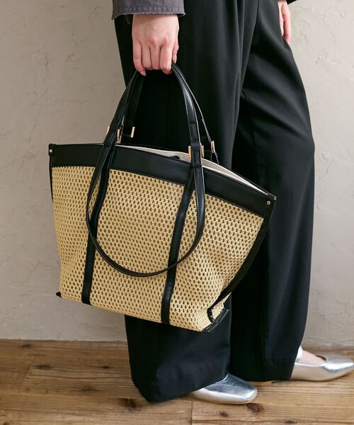 メッシュ編みのPP生地と綿麻素材を重ねた夏らしいダブルハンドルのトートバッグ。 ●ポイント メッシュと綿麻の間はポケットになっており見せる収納もお楽しみ頂けます。 デイリーからお出かけまで幅広く活躍してくれます。 ※取り扱いについては、商品についている洗濯表示にてご確認下さい。 ※照明の関係により、実際よりも色味が違って見える場合があります またパソコン・スマートフォンなどの環境により、若干製品と画像のカラーが異なる場合もございます。 ※商品の色味は、商品アップ画像をご参照ください。 【注意事項】 ・画像の商品はサンプルです。 ・サイズ表記はあくまで目安となります。 実際の商品と仕様、加工が若干異なる場合があります。