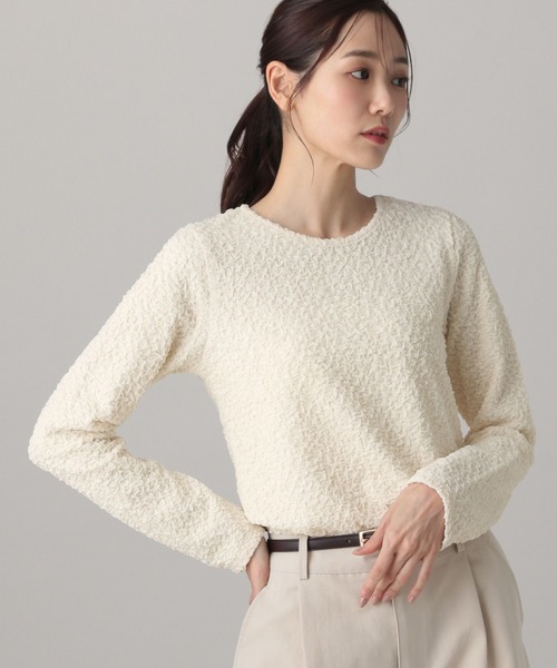 MATINEE LINE・機能/素材マシンウォッシャブルイージーケアイージードライポコポコとした柔らかいレースとフロッキードットを施した楊柳素材のアソート展開・デザイン人気のシャーリングブラウスに、レースとドットのトレンド素材を取り入れた、パッと目を惹くブラウス。首元や袖口のシャーリング、袖の程よい透け感が女性らしく華やかな印象を与えてくれます。身頃のみ裏地付きで安心。ベーシックカラーで他のアイテムを邪魔しないので、インナーとしても使いやすいです。・おすすめスタイリングパンツとの相性が抜群で、きれい目なパンツからデニムやチノまで幅広く合わせられます。シンプルなボトムスでも華やかになり、スタイリングを格上げします。トレンドスタイルからオケージョンシーンまで、幅広いシーンで大活躍します。-----------------------------透け感:やや透ける伸縮性:あり生地感・厚さ:普通裏地:なし-----------------------------・オフホワイトで計測しています。(こちらは参考情報となります。カラーにより多少の誤差がございます。)・こちらの商品はGLOBAL WORK独自の採寸方法となっています。本サイトのサイズガイドと採寸方法が異なる場合がありますのでご了承ください。・お買い物が便利になる機能がたくさん・商品のお気に入り登録完売アイテムの再入荷通知、ラスト1点、またクーポンやお値下げ通知をお知らせします。・ブランドのお気に入り登録新商品や再入荷のお知らせ等、いち早くブランドのお得な情報を受け取ることができます。ぜひご登録ください。