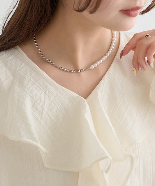 異素材ミックスが目を惹くネックレスが登場!●デザイン・パールとメタルボールを組み合わせたバランスの良いデザイン。・甘くなりすぎない異素材ミックスで大人っぽい印象に。・スタイリングに合わせて向きを変え、様々な雰囲気を楽しめます。・オケージョンにもデイリーにも使える万能アイテムです。"Lara&Heart"わがままに... かわいいを楽しむ女性に向けて。 2008年アクセサリー、服飾雑貨ブランドLara&Heartをスタート。女性にとって永遠のモチーフであるリボンを中心に様々なテイスト、アイテムを提案。ファッション、カルチャーそして人の心をも結びつけていきたい。そんな思いを込めて物作りをしています。日常に少しの艶やかさをプラスしてキュートな大人の女性であり続けるために。------------------------------------------------------商品のお気に入り登録➡ お気に入りアイテムの値下げ・再入荷・在庫1点などの通知を受け取ることができます。ブランドのお気に入り登録➡ 新商品や再入荷、セール、クーポン配布などお得な情報を受け取ることができます。※サイト上のカラー名と、お届け商品に記載されているカラー名が異なる場合がございます。※商品の色味は、撮影場所や光のあたり具合などにより色味が違って見える場合が御座います 。 また、お客様のお使いのPCのモニター環境などにより色味が違って見える場合が御座います。予めご了承の上ご注文下さい。※ご注文いただいた予約商品のお届け時期の確認は、注文履歴ページより行えます。------------------------------------------------------