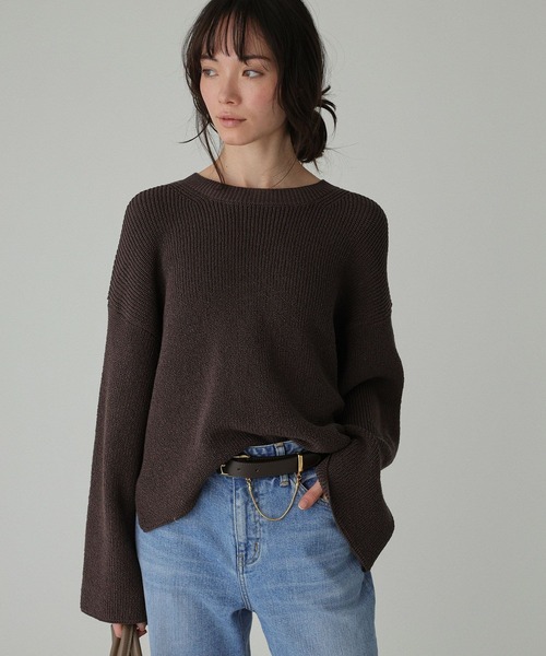 2026 PRE SPRING COLLECTION ボトムを選ばずサマになる、360度美シルエットニット。 ◆DETAILポイント◆ ・前丈が短めで、どんなボトムスにも合わせやすいニット。 ・着丈に前後差をつけ、後ろ身頃はヒップにかかる安心丈に。 ・長めのすとんとした袖にはスリット入り。袖を通すと思わぬ女性らしさが。 ◆FABRICポイント◆ ・コットンを加工し、よりさらりとした肌触りのテープ状のストローヤーン。 ・ローゲージニットなのに軽いのが特徴。 ◆おすすめコーディネート◆ ・パンツでもスカートでもサマになる万能ニット。 ・ピンクを差し色にするのが今年らしくておすすめ。 【BABYLONE / バビロン】 "Be myself" 好きな色 好きなかたち 好きな着こなし 自分の好きは自分だけが知ってる 自分らしい自分を好きでいたい 時代のニュアンスを取り入れながらも まわりにとらわれない ブレないしなやかな女性たちへ 【気になる商品は「お気に入り」登録を】 ハートマークをクリックし、お好きなカラーを選んでお気に入りに登録すると 在庫残り僅かの通知、再入荷通知などの情報を受け取ることができます。 ※商品の取り扱い方法につきましては、タグ等に記載されている「取り扱い上の注意」「洗濯表示」をご確認ください。 ※屋外での撮影画像は、光の当たり具合で色味が違って見える場合があります。あらかじめご了承ください。なお商品の色味は、スタジオ撮影の画像をご参照ください。