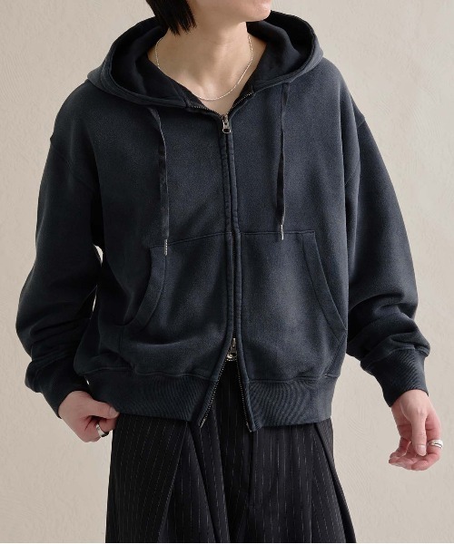 ------------------------------------------------------【epnok / エプノック】毎週(金)に新作をリリース新作情報はInstagram公式アカウントからチェック!↓【@epnok_official】------------------------------------------------------380g/㎡のコットン生地にほのかな色落ちを施した綺麗めにも合わせられる差別化フーディー。◆度詰めの380g/㎡の肉感のある裏毛生地◆サンフェード加工によるナチュラルな色落ち◆短丈ルーズのメリハリのあるシルエット◆着こなしを変えられるダブルジップ仕様【生地】がっしりとした肉厚のコットン素材。裏起毛ではなく”裏毛”生地を採用。真冬以外の季節で長く活躍する生地感です。【デザイン】柔らかい色落ち加工が特徴のフーディーです。製品化してから硫化染めやサンフェード加工などの複数の加工を行ってナチュラルな色落ちを実現しました。全て職人の手作業によりひとつひとつ丁寧にを加工を施し、首元のドローコード含め全体にほんのり加工が入った絶妙な濃淡を作り出しています。ドローコードはあえて太めに、アームはゆったりとさせました。さらにフードは顔がすっぽりと収まるようやや大きめに設計。無骨な印象になりすぎず、普段使いしやすいアイテムに仕上がりました。【シルエット】身幅をゆったりさせつつ、着丈は短めに仕上げたepnokのルーズシルエット。トレンドの短丈シルエットとたぽっとした可愛らしい雰囲気を両立しました。袖口もたぽっとさせ、着るだけでこなれた雰囲気が出るよう設計しています。【epnokの身長別推奨サイズ】〜165cm Sサイズ166〜167cm S or M168〜173cm Mサイズ174〜175cm M or L176cm〜 Lサイズ【epnok / エプノック】日常の何気ない一瞬をも引き立てる。「epnok」は“当たり前”に遊びを効かせた、ベーシックなモダンスタイルを提案します。-オフィシャルInstagramにて最新情報や限定情報を毎日更新中!-▼商品のお気に入り登録完売カラーの再入荷通知や、ラスト1点、セールの通知をお知らせ致します。▼ブランドお気に入り登録新商品や再入荷など、いち早くブランドの情報を受け取ることができます。※サイトに表示されているカラー名と実際のお届け商品に記載されているカラー名が異なる場合がございます。