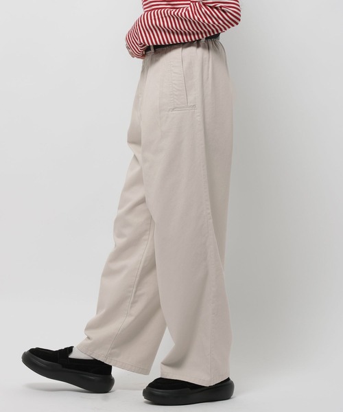 デイリー使いにぴったりな優秀ワイドパンツ■素材特性オールシーズン使える肌触りの良いさらりとした素材感。程よい厚みのある生地感が、体のラインを拾いにくいです。綿を使用しているので通気性も良く、快適な履き心地が叶います!■デザイン親しみやすさとキレイ見えを叶えるボーイフレンドチノパンツ。ウエスト周りに入ったタックが、ゆったりしたシルエットできれいな印象にしてくれます◎前はタックでキレイめにスタイルアップ、後ろはゴムで楽ちんに履いていただけます。どんなトップスとも相性良く、レディライクにもボーイッシュにも使える万能アイテムです!・ウエストゴム:あり・ポケット:あり・裏地:なし・裾絞り:なし■おすすめスタイリング大人のメンズライクコーデがおすすめ。カジュアルなスウェットとの相性も抜群です。ベルトやローファーなどの小物を合わせれば、キレイめスタイルにもピッタリ!ーーーワイドパンツ タックパンツ ーーー