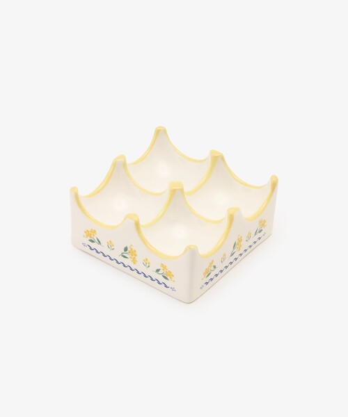 心に咲く花という意味の「Fleur du Coeur(フルール デュ クール)」シリーズのエッグトレーです。「調理前のたまごはころころと転がって置き場に困る」という方にぴったりな、たまごを4つを置けるアイテムです。調理中のお箸やカトラリーの置き場にもなるので、お料理がより快適になりそうです。*食器洗浄機×、電子レンジ×、直火×、オーブン×*本品はエッグトレーです。卵の保管や調理時の仮置きにご使用ください。*1点ごとに柄の出方が違うことがあります。