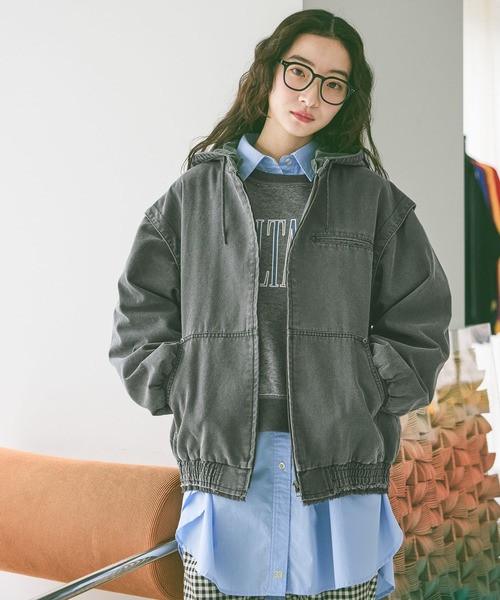 1枚3役で使える春カラー映えるヴィンテージ風デニムブルゾン■素材特性綿100%を使用した、柔らかく丈夫な日常使いしやすい生地感。なめらかな素材の裏地付きで、厚みのあるアイテムとも重ね着しやすいです。■デザインマルチな着回しが楽しめる万能ブルゾンです。フードと袖はボタンで簡単に取り外し可能◎長袖アウター、ベスト、ノーカラーとして、気温や気分に合わせて着こなしを楽しめます!ゆとりのあるシルエットで体型カバーしつつ、こなれた印象を与え、春のカジュアルコーデを格上げします。■おすすめスタイリングロンTやシャツにサッと羽織るだけで、トレンドライクなスタイリングに仕上がります。シルバーやゴールドの大ぶりなアクセサリーをプラスすれば、一気に大人のきれいめカジュアルコーデへステップアップ!※屋外の光や照明の当たり具合で、実物と色味が異なって見える場合がございます。詳細画像の色味をご確認ください。 なお、商品の色や質感を出来るだけ忠実に再現するよう心掛けておりますが、パソコンなどの環境により、実物と若干異なる場合がございます。※写真を許可無くコピー・転用することは固くお断りします。※取扱いアイテムは店舗により異なる場合がございます。