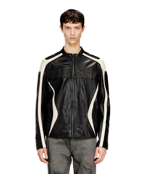 上質なゴートレザーを採用したレギュラーフィットのバイカージャケット「L-ADAM」。ヒーローカットラインや配色使い、パイピングディテールなど、いたるところにこだわった手の込んだ一着です。表面にガーメントウォッシュ加工とダーティーハンド加工を施しており、ヴィンテージ感のある佇まいに。胸元の大胆なロゴとタイニーロゴのジッパープルがディーゼルならではのアクセントになっています。