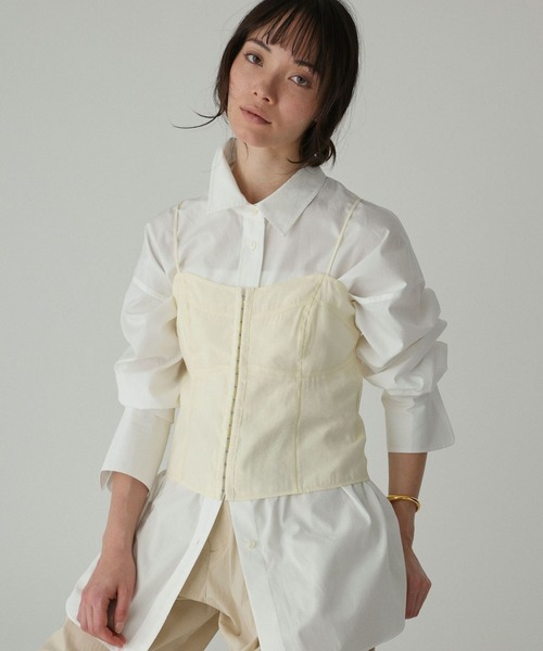 2026 PRE SPRING COLLECTIONいつものコーデに新しい表情を。「透け感」で遊ぶ、大人のレイヤード◆DETAILポイント◆・シアー感がポイントのレイヤード用ビスチェ。・フロントのホックデザインがポイント◆FABRICポイント◆・程良い張り感と透け感がる素材。◆おすすめコーディネート◆・カットソーやニットとレイヤードを楽しんで。・フロントホックの下側を外して着こなすのもおすすめ。【BABYLONE / バビロン】"Be myself" 好きな色 好きなかたち 好きな着こなし 自分の好きは自分だけが知ってる 自分らしい自分を好きでいたい時代のニュアンスを取り入れながらも まわりにとらわれない ブレないしなやかな女性たちへ【気になる商品は「お気に入り」登録を】ハートマークをクリックし、お好きなカラーを選んでお気に入りに登録すると在庫残り僅かの通知、再入荷通知などの情報を受け取ることができます。※商品の取り扱い方法につきましては、タグ等に記載されている「取り扱い上の注意」「洗濯表示」をご確認ください。※屋外での撮影画像は、光の当たり具合で色味が違って見える場合があります。あらかじめご了承ください。なお商品の色味は、スタジオ撮影の画像をご参照ください。