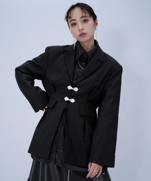 ーーーオリジナルのチャイナパーツがポイント!美シルエットで上品なモードジャケットーーーpoint□オリジナルのチャイナ金具のボタンがポイント□ボタンをシルバーにすることでよりモードな印象に□留め具がウエストよりやや高い位置でついている為、スタイルアップ効果抜群□ウエストがシェイプされたシルエットで女性らしいのが特徴□フラップポケットがカッチリとした印象になり、フォーマルなスタイルにも合わせやすい◎styling骨格ナチュラル:デニムやカーゴパンツなどのカジュアルなアイテムと合わせるのがオススメ。前を留めずにラフに羽織るか袖をラフにまくり上げる着方がスタイリッシュな印象になります。骨格ウェーブ:ジャケットの裾からふんわりとしたスカートを出すと華やかなXラインが完成し、フェミニンな魅力が引き立ちます。ワイドパンツを合わせても大人っぽさが際立ちます。骨格ストレート:センタープレス入りのボトムスやタイトスカートでIラインを強調。首元がスッキリとしたトップスやシンプルなシャツを合わせジャケットは閉めて着るのがまとまり感がでておすすめ。set item同じチャイナ金具を使用したワイドパンツとセットアップが可能。セットアップ対応アイテムはコチラを検索→【643050】※加工を施した画像を使用しております。実物と色味が異なる可能性があるため、色味は詳細後ろにある生地寄り画像を参考にお願いいたします。あらかじめご了承下さい。