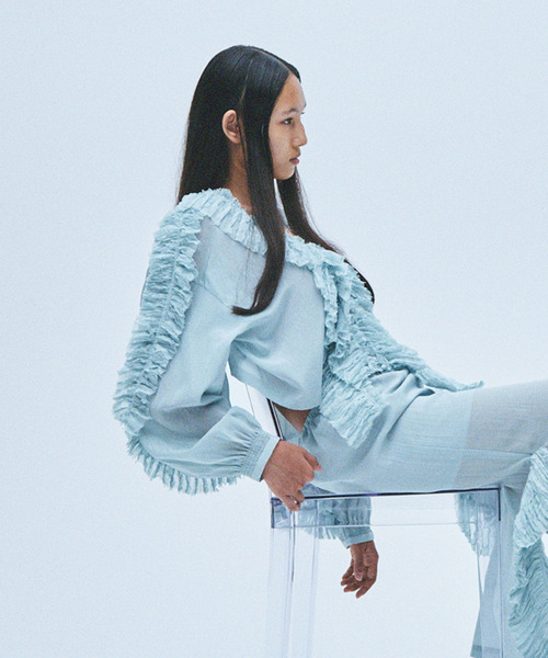 ※2/2(月)19:00までの期間限定予約販売とさせていただきます。※上記期間中でも限定数に達し次第終了とさせていただきます。※予約のみの販売となり通常販売予定の無いお品物もございますので予めご了承ください。前開きで羽織としても活躍する、華やかな雰囲気のブラウス。ーデザインについて・フロント、襟元、袖にたっぷりとシフォンフリルを配した贅沢なデザイン・シフォンのボリューム感が華やかな印象・フロントは開閉可能で、ブラウスとしても羽織としても活躍・袖口のシャーリングで立体的なシルエットに・透け感のあるシアー素材で軽やかな着心地ースタイリングについて・ボタンを閉めてブラウスとして、キャミソールと重ねてフェミニンに・羽織として使えば、シンプルなトップスを一気に華やかに・カジュアルなデニムパンツと合わせれば、カジュアルダウンしたフェミニンスタイルに・ロングスカートと合わせて、ロマンティックなムードを演出・パーティーシーンから普段使いまで、幅広く活躍する一枚■素材の特徴・上品な光沢感とカジュアルな風合いを両立・高密度織りによる滑らかな肌触り・清涼感のある軽やかな着心地・程よいシワ感とエアリーな質感・春夏シーズンに最適な素材■素材の質感透け感:あり裏 地:なし伸縮性:なし光沢感:あり生地の厚さ:薄い【muller of yoshiokubo】Dress For Daily Life 〜ドレスを着るという楽しみを日常に〜「muller」は、スペイン・アラゴン州でつかわれる方言で“女”を意味する言葉。この言葉を冠することで、ローカルでマイナーなものが常に新しさと驚きを運んできてくれる、という確信をブランド名に込めています。「女性が着る洋服とは?」を追求した先に見出したのが、女性だけのファッションであるドレス。これをブランドの象徴に、「いつの時代でも、どんなに時間が経っても、身につけることで喜びや心躍る気持ちになれる一着を」と、ドレスだけでなく、トップスやスカート、パンツという形で提案しています。【お買い物をよりお楽しみいただく為に】▼商品のお気に入り登録(♡マークをクリック)完売カラーの再入荷や、ラスト1点の通知を受ける事ができます。▼ブランドのお気に入り登録新商品や再入荷など、いち早くブランドのお得な情報を受け取ることができます。
