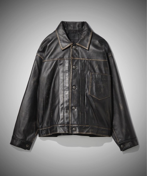ーーー着込むほどに自分の体型へと馴染んでいく、本革のトラッカージャケット。ーーーDESIGNオーソドックスなトラッカージャケットのデザインをベースにしながら、素材を本革に置き換えることで、武骨さを抑えたシックで都会的な表情に。クラシカルなフォルムを活かしつつ、ボクシーかつコンパクトな丈感に設計。ハイウエストのパンツとも抜群の相性を誇ります。Tシャツやデニムと合わせた王道のカジュアルスタイルから、スラックスやシャツと合わせたモードなスタイルまで、着こなし次第で表情を変える汎用性の高さが魅力。MATERIALきめ細やかで柔らかい高品質なシープレザーを使用。着込むほどに自分の体型へと馴染んでいく、本革ならではのエイジングを楽しめます。フェイクレザーと比較しても長期間愛用できるのが本革の大きなメリット。時を経ても色褪せないデザインと素材の強さにより、ワードローブとして寄り添います。