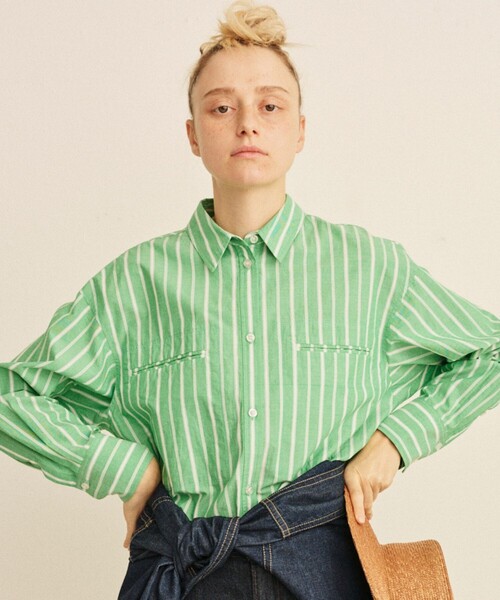長め着丈のルーズフィットストライプシャツ 存在感のあるストライプが目を引く胸ポケットシャツ。 胸ポケットはディテールに こだわりアクセントとして配置し、さりげないおしゃれポイントに。 ヒップまわりをカバーする長めの着丈で、 1枚でさらっと着るだけでこなれた印象に仕上がります。 袖口のカフスはボタンで幅調節が可能なので 手元の見え方や重ね着に合わせてアレンジできます。 程よくゆとりのあるシルエットで、 タックイン・アウトどちらの着方もバランス良く決まります。 デイリーからきれいめまで幅広いシーンにマッチする一枚です。 シンプル&上品:ホワイトパンツに合わせてクリーンなモノトーンコーデに。ヒールでまとめればオフィスOK。 カジュアル:デニムにラフに羽織って、スニーカーで抜け感を演出。 レイヤード:薄手ニットやタートルの上に重ねて袖カフスを見せるスタイリングも◎ 旬の着方:前だけタックインしてメリハリをつけるとスタイルアップに。 【注意事項】 ※商品画像は、光の当たり具合やパソコンなどの閲覧環境により、実際の色味と異なって見える場合がございます。あらかじめご了承ください。 ※画像の商品はサンプルです。実際の商品と仕様、加工が若干異なる場合があります。 ※サイズ表記はあくまで目安となります。 ※その他の予約商品、通常商品との同時決済はできません。 ※入荷状況により、お届け予定が前後する場合があります。 ※お客様への発送が店頭販売より遅れる場合もあります。 ※追加生産商品は、一部の店舗、通販で販売中の場合がございます。予めご了承下さい。 ※商品を使用前に、タグ等に記載されている「取り扱い上の注意書き」「洗濯表示」を必ずご確認ください。 ※商品に不良が無い場合、包装紙および箱の彼損がございましても発送いたします。あらかじめご了承ください。