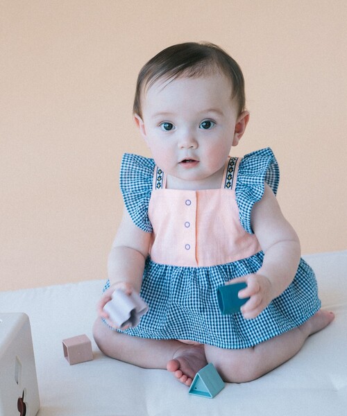 配色とチロリアンテープにうっとり♪フリルと柄の切り替えが愛らしいベビーロンパースです。肩にはチェック柄のフリルとチロリアンテープをあしらい可愛さをさらにプラス。ウエスト部分のふんわりとした切り替えのギャザーが、ふんわりとしたスカートを穿いているようなシルエットに♪ 前立てと股部分にはスナップボタンが付いており、お着替えやおむつ替えも楽ちん。同シリーズのジャンパー スカートと合わせて姉妹でお揃いもおすすめです。1枚で涼しく着用できるのはもちろん、レギンスやインナーなどと合わせて重ね着も楽しめます。※デリケートな赤ちゃんのお肌を守るために、着用前の水通しをおすすめいたします。【対象年齢:およそ6ヶ月~1歳】BROWN/PINK Model:H71(cm)Size:70PINK Model:H63(cm)Size:70※光の当たり具合やパソコンなどの閲覧環境によって実際の色味と異なって見える場合がございます。予めご了承ください。※商品の色味は商品単体で撮影した画像をご参照ください。こども ビームス / コドモ ビームスこどもたちの豊かな感性や想像力を、よりいっそう伸ばすきっかけになるモノやコトを提案する〈こども ビームス〉。日々成長するこどもとのかけがえのない時間が心豊かで、もっと素晴らしいものになるようなモノやコトを提案しています。