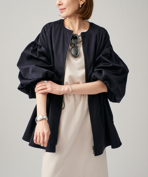【2026SS】 VERMEIL par iena 人気のノーカラーギャザーZIPブルゾンが追加決定! ギャザーで魅せる、モードなブルゾン。 ギャザーデザインがアクセントのジップブルゾンは、ウエストのドローコードを絞ることで広がるフレアシルエットに。 ウエスト位置でマークされるため、スタイルアップ効果も期待できます。 ノーカラーで首周りはすっきりとした印象に。 美しい微光沢と程よいハリ感のある素材で、シルエットが綺麗に決まるのも魅力。 さらに、ご自宅で手洗い可能なイージーケア仕様です。 ミリタリーなブルゾンをレディーモードにブラッシュアップできる一枚。 モノトーンのシンプルなスタイリングにも映える、春先から秋まで活躍する万能アウターです。 ※品番25011938326030の追加品番です。 ※若干の仕様変更がある場合がございます。 ※色違いブラック・ベージュは品番25011938326030にて販売中です。 ********************** 透け感:なし 裏地:なし 伸縮性:なし 光沢感:ややあり 生地の厚さ:普通 ********************** 《スタッフ chika》 身長:154cm/普段サイズ:36/着用サイズ:フリー サイズ感:ウエストは調節可能なので、スタイリングに合わせてキュッと絞ったり緩めたりアレンジして頂けます。154cmでヒップがしっかり隠れる着丈。 素材感:軽くてハリ感と微光沢感がある素材。 ********************** 《スタッフ hikari》 身長:166cm/普段サイズ:38/着用サイズ:フリー サイズ感:袖は手首を掴めるくらいの長さ、着丈はヒップが隠れる程度になりました。袖口はゴム仕様でプッシュアップもしっかりとまります。 素材感:しなやかでつるっとした手触り。滑らかな光沢感があります。 着心地:とても軽い着心地。Wジップ仕様なので上ファスナーはバスト上、下ファスナーはウエストまで開き、ウエストをきゅっと絞った感じが骨格ストレートの私にはバランス良い着方に感じました。ハード過ぎず適度に綺麗めなムードがあるデザインがとにかく素敵! ********************** 《スタッフ woody》 年齢:30代前半/身長:160cm/体型:普通/普段サイズ:36~38/着用サイズ:フリー サイズ感:袖口は手首が少し見えるくらいの長さ。きゅっとプッシュアップしてボリュームを出すデザインもゴムでしっかり止まりました。 素材感:ぺラペラで薄くて軽いというようは、しっとりとした素材で高級感のある光沢があります。 着心地:ボリュームがあるデザインながら軽い着心地。スポーティな印象やカジュアルな印象になりがちなブルゾンですが、ノーカラーデザインや細部のディテールがあり女性らしく着こなせそう。ウエストゴムはきゅっと絞るのもよいですが、緩くしてAラインシルエットにして着こなすのも素敵でした! ********************** 【お取り扱い等について】 ・取り扱いについては、商品についている品質表示でご確認ください。 ・照明の関係により、実際よりも色味が違って見える場合があります。 またパソコン・スマートフォンなどの環境により、若干製品と画像のカラーが異なる場合もございます。 ・商品の色味は、商品アップ画像をご参照ください。 ・こちらの商品は、VERMEIL par iena での取り扱いになります。 直接店舗へお問い合わせの際は VERMEIL par iena店舗へお願い致します。 メイン着用スタッフ身長:162cm 着用サイズ:フリー スナップ着用スタッフ身長:160cm 着用サイズ:フリー 詳細着用スタッフ身長:162cm 着用サイズ:フリー 本体:手洗い可能
