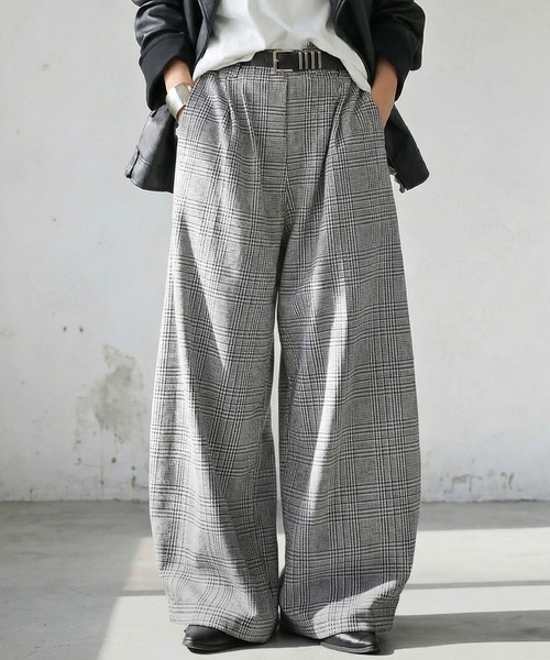 クラシカルなグレンチェック柄が魅力の、ワイドロングパンツです。丈感はフルレングスで、足元までしっかり覆うロング丈が大人らしい印象に仕上げます。柄は繊細なグレンチェックで、コーデに上品なアクセントを添えるクラシカルな雰囲気です。形状はパターンにゆとりを持たせたワイドストレートで、体型を自然にカバーしながら脚のラインを美しく見せてくれます。テーラードライクなハンサム素材を使用し、程よい厚みとハリ感がありながらもごわつかず快適な着心地を実現。ウエストは総ゴム仕様に加え、内紐でサイズ調整が可能です。両サイドにはポケットを配置し、日常使いに便利な設計に。同素材のジャケット(PK-01381)とセットアップコーデも可能です。カラーは、ブラック(黒・くろ・Black)のみの展開となります。※柄の出方は生地の裁断により一点一点異なります。柄の繋ぎ目は全てはあっておりません。ご指定は出来ませんのでご了承の上お買い求めくださいませ。【♡マークを押して、お気に入り登録を!】『ラスト1点通知』、『再入荷通知』、『値下げ通知』など、お得な情報を受け取ることができます!!気になったアイテムは今すぐ ”お気に入り登録” をお忘れなく★★