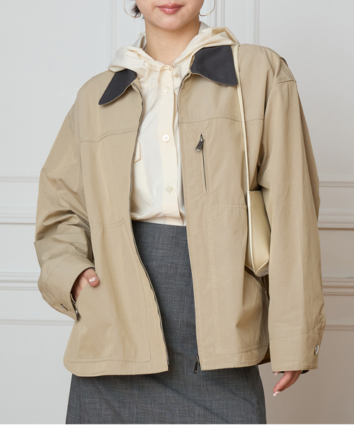 【2026SS】 IENA LA BOUCLE インポートのシャンブレー素材を使用した、軽さと上質感を兼ね備えたライトワークブルゾン。 高密度で織られた生地は、カジュアルなデザインながらもどこか品の良さが漂い、大人がさらりと羽織れるクラス感が魅力です。 ワークジャケットのディテールをベースにしながら、古着とは異なるモダンな設計と女性らしいシルエットに仕上げているのがポイント。 ボディラインを拾いすぎず、抜け感が出るバランスで、幅広いスタイリングに馴染みます。 デニムやワイドパンツとの相性はもちろん、レースやチュール、フレアスカートなどレディライクなアイテムとミックスするのもおすすめ。 軽やかに羽織れて季節の変わり目にも重宝する万能ブルゾンです。 ********************** 透け感:なし 裏地:なし 伸縮性:なし 光沢感:なし 生地の厚さ:普通 ********************** ※取り扱いについては、商品についている品質表示でご確認ください。 ※こちらの商品は、IENA LA BOUCLE(NEWoMan新宿店)でのお取扱いとなります。 直接店舗へお問い合わせの際は、上記店舗へお願い致します。 ※照明の関係により、実際よりも色味が違って見える場合があります。 またパソコン・スマートフォンなどの環境により、若干製品と画像のカラーが異なる場合もございます。 ※商品の色味は、商品アップ画像をご参照ください。 着用スタッフ身長:160cm 着用サイズ:フリー 詳細着用スタッフ身長:162cm 着用サイズ:フリー 本体:洗濯機洗い(弱)