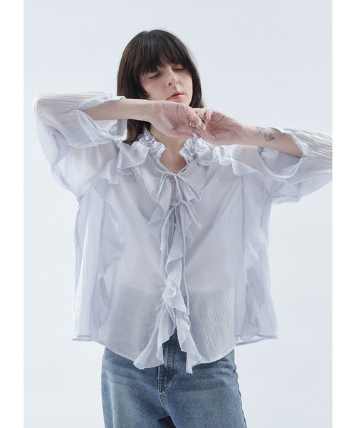 【Shelly island / シェリーアイランド】・軽やかな楊柳シアー素材を贅沢に使った、大人フェミニンなフリルシャツ。・動くたびに表情が出るフリルデザインで、シンプルなボトム合わせでも一気に華やか。・甘さはありつつ、透け感と落ち感で“可愛すぎない”のも◎・前リボンは結んでも垂らしてもOK、レイヤードにも使える万能アイテムです。《detail》・表情のある楊柳シアー素材を使用・フロントからサイドにかけての立体フリルデザイン・リボン開閉仕様で着こなしアレンジ可能・イン/アウトどちらも決まる程よい丈感《fabric》・透け感:あり・裏地:なし・伸縮性:なし・生地の厚さ:薄手◆商品のお気に入り登録【♡登録のお願い】完売カラーの再入荷通知、残り1点の通知、セール等値下げした時の通知も受け取ることができます。◆ブランドのお気に入り登録新商品や再入荷など、いち早くブランドのお得な情報を受け取ることができます。是非ご活用ください。Instagram≫≫≫【@shellyisland__official】TikTok≫≫≫【@shellyisland_official】※撮影環境により多少実際のカラーと異なる場合がございます。※生産時期により若干の色ブレやサイズの変動が生じる場合がございます。※表示のサイズ感と実物は異なる場合もございます。