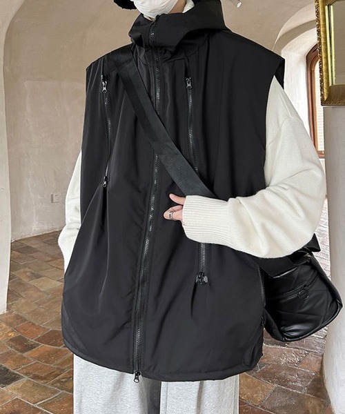 ◆WESTBOY COLLECTION◆ 無駄を削ぎ落としたデザインが際立つ、クールな印象のオーバーサイズベスト。 マットな質感と縦に配置されたジップが、都会的でシャープな雰囲気を演出します。 フード付きデザインで、レイヤード次第でロングシーズン活躍。 スウェットやニットの上に重ねるだけで、スタイリングに奥行きとエッジをプラス。 ストリートからモードまで対応する、洗練されたユーティリティアイテムです。 詳細補足 仕様:MLXLサイズ展開 / フロントファスナー/ポケット×2 伸縮性:なし 透け感:なし 光沢:なし 裏地:あり 厚さ:普通 サイズ感:普通 レビュー ●staff mizu(woman) /168cm / 52kg / XLサイズ 軽量なので身軽に動けてレイヤードしやすいベストです。 お尻が十分に隠れる丈感でオーバーサイズ。 インナーに厚手のニットやカーディガンなどをきても余裕のサイズ感◎ 【WB ORIGINALS(ウエストボーイオリジナルズ)】 オーバーサイジングを中心に、時代のニーズに合った新たなトレンドを展開。 “STREET” “MODE” “SPORT”を取り入れ、独自の世界観で新たな価値観を提案するオリジナルブランド。 ■取扱注意事項■ ※サイズは、測定方法と測定者によって多少の誤差がありますのでご了承下さいませ。 また体型によって、サイズ感に個人差がございます。(平置き採寸) ※商品によってはシワがつきやすく、畳みジワや折りジワなどが強く出る場合がございます。 その際は加湿した風呂場に数時間干すか、スチームアイロンでのお手入れをお勧めしております。 ※生地の素材上、においが気になる場合がございます。 その際は陰干しして頂くと、ほとんど感じにくくなります。 ※レース等の繊細な素材を使用している場合には、お取り扱いにご注意下さい。 ※デニムを使用した製品は、インディゴ染めをしています。汗や摩擦により移染しやすいので、白色、淡色の組み合わせや重ね着はお避け下さい。 ※ニット素材を使用した製品は、重みで伸びやすくなりますのでハンガーでの保管はお控えください。 ※お洗濯の際には、品質表示の指示に従ってください。必要であれば専門店にご相談ください。 家庭でご洗濯できる商品に関しては、洗濯専用ネットをご使用の上、個別での洗濯をお勧めいたします。 お色物は、色移りする可能性がございます。 ※着用画像は撮影状況や光によって、多少異なる場合がございますので、置き画像をご確認下さい。 ※2023年7月1日より、環境に配慮した取り組みの一環として、紙のアテンションタグを廃止しております。