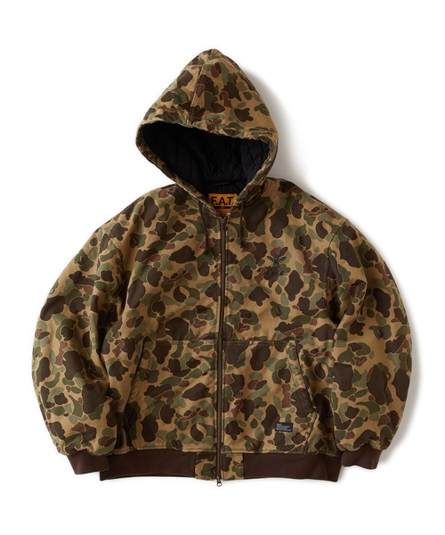 目の詰まった肉厚キャンバス素材を使用したキルティングパーカーは、ダックハンタープリントが印象的。ウォッシュ加工を施すことで適度な柔らかさと動きやすさに仕上げたアイテム。ゆとりのあるシルエットながらも着丈を短くすることにより、インナーとの絶妙なバランスを楽しみたいアイテム。胸のロゴ刺繍やポケットのブランドネームもさりげなく主張してくれる。